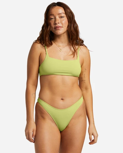 Clean lines, understated design. Made of recycled Peach Stretch fabric, this cropped bikini top has a sleek pullover shape with a square neck and adjustable straps.
