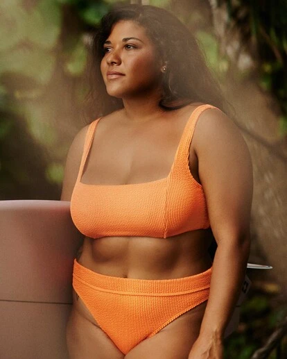 M | Bre is wearing a size M and has a 34″ bust, 27.5″ waist, and 42.5″ hips